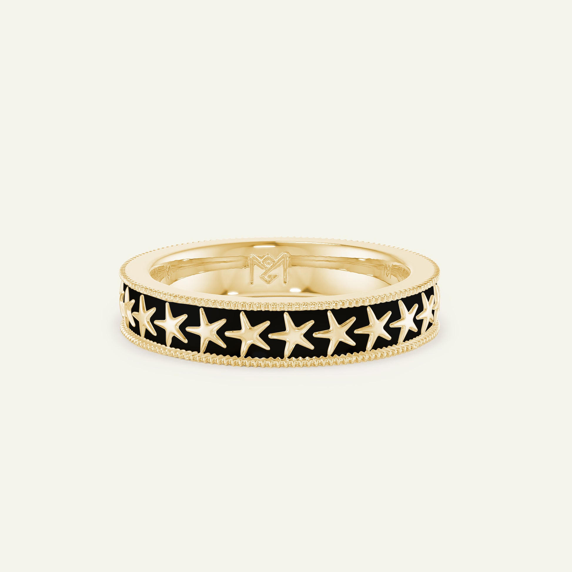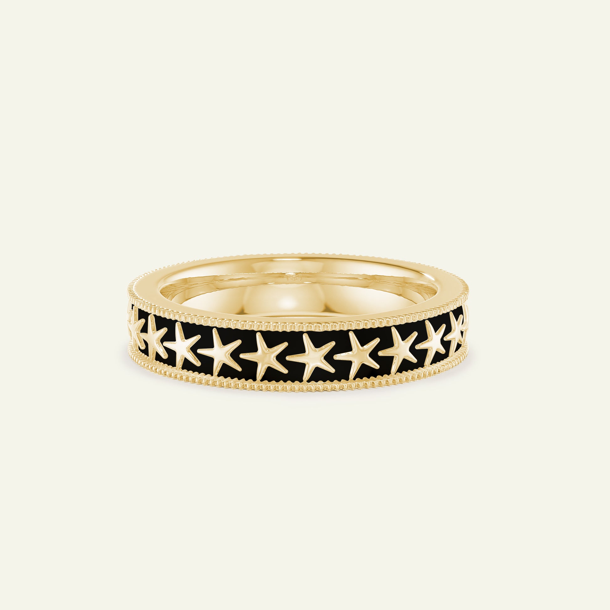 Streamlined 18K gold vermeil band accented with sleek black enamel, perfect for adding subtle contrast to your everyday stack